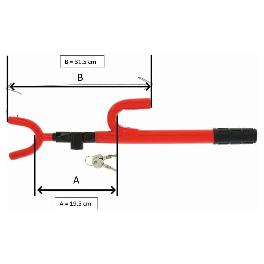 Αντικλεπτική κλειδαριά τιμονιού για προστασία του αυτοκινήτου σας από τυχών κλοπή. Διαστάσεις 10 x 2 x 10 cm.