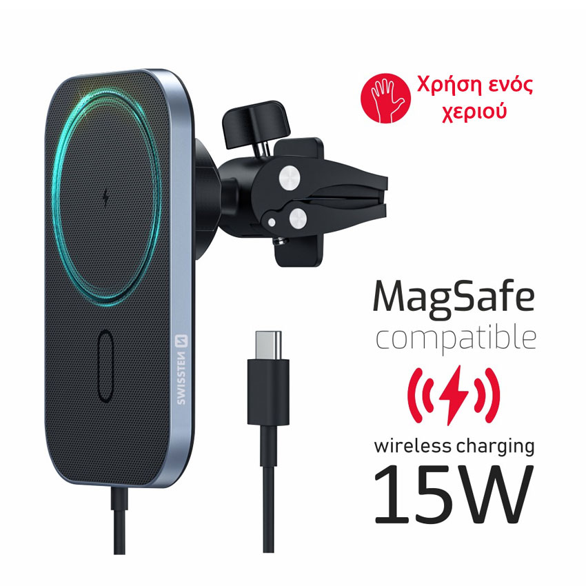 Η βάση αυτοκινήτου της Swissten με ασύρματο φορτιστή έχει σχεδιαστεί για να τοποθετείται στον αεραγωγό του αυτοκινήτου. Η βάση παρέχει γρήγορη ασύρματη φόρτιση με ισχύ 15W. Μπορείτε να προσαρμόσετε το τηλέφωνο σε κατακόρυφο ή οριζόντιο προσανατολισμό και να το χειριστείτε άνετα μόνο με το ένα χέρι. Οι γάντζοι της βάσης περιβάλλονται από λαστιχένια επιφάνεια για την μεταλύτερη σταθερότητα του κινητού και για την αποφυγή οποιασδήποτε φθοράς. Η δυνατότητα περιστροφής εώς 360° σας επιτρέπει να τοποθετήσετε τη συσκευή σας ανάλογα με τις ανάγκες σας.