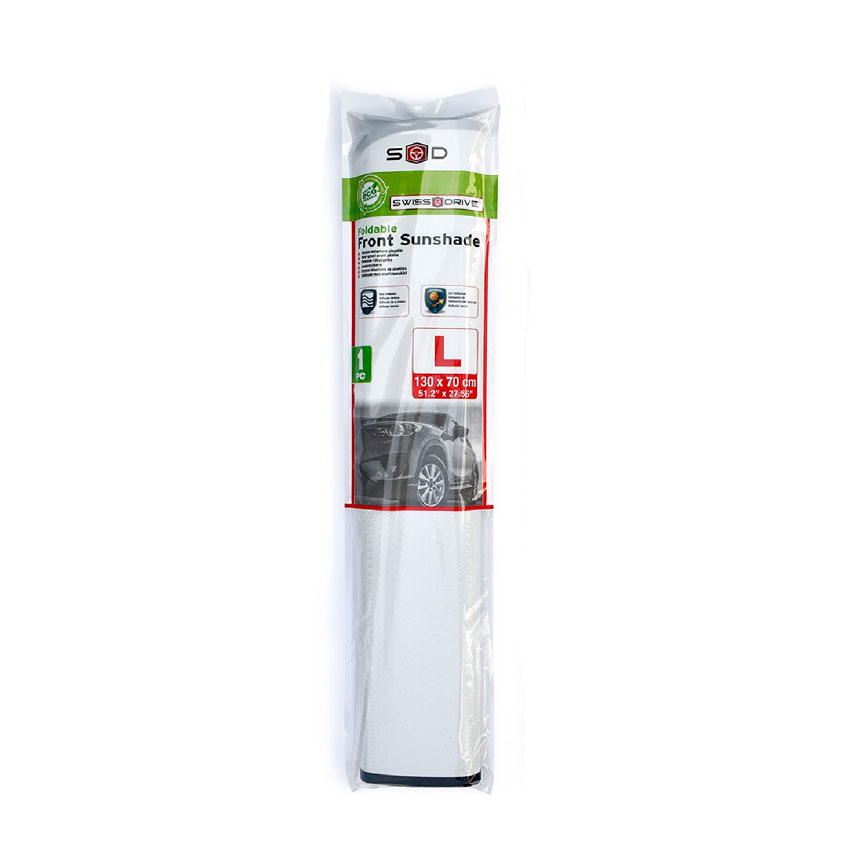 Εσωτερική ηλιοπροστασία παρμπρίζ κατασκευασμένη από ανθεκτικό θερμικό αντανακλαστικό υλικό με θερμομονωτική εσωτερική στρώση αφρού 3mm. Φιλικό προς το περιβάλλον προϊόν + 80% ανακυκλωμένο πλαστικό (πλαστικά απόβλητα)
