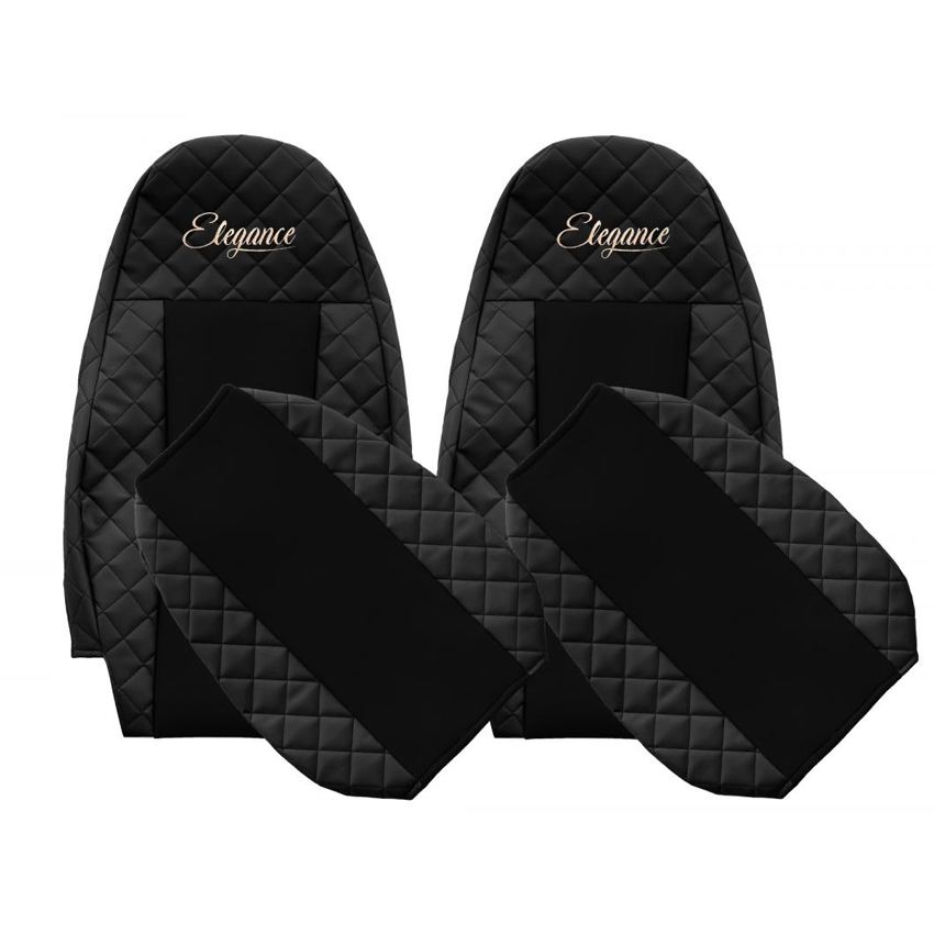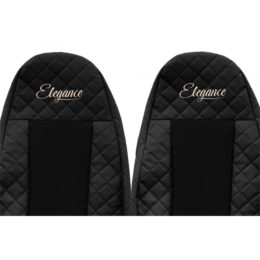 Καλύμματα μαύρου χρώματος Elegance Q, κατασκευασμένα από τεχνόδερμα υψηλής ποιότητας προσδίδουν μοναδικό στυλ και κομψότητα στο φορτηγό σας. Εξαιρετική εμφάνιση και μεγάλη αντοχή στο χρόνο. Προσφέρουν την υψηλότερη άνεση οδήγησης κατά τη διάρκεια των μακρών ωρών εργασίας για κάθε οδηγό. Εύκολη τοποθέτηση. Πλένονται στο πλυντήριο.