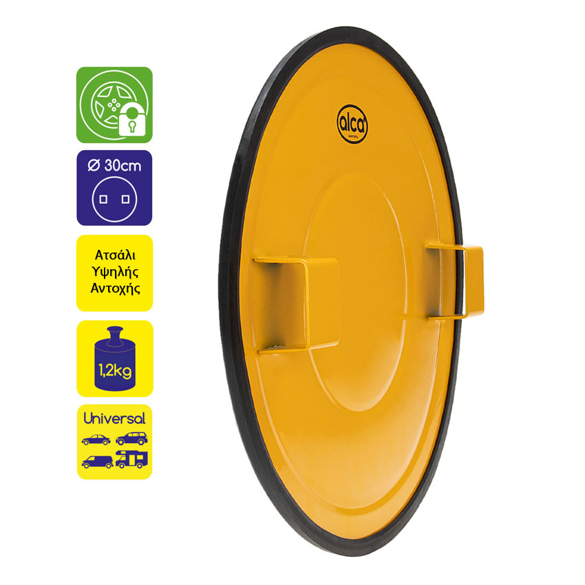 Προστατέψτε τα μπουλόνια των τροχών σας από κλοπή με το κάλυμμα μπουλονιών τροχών της Αlca. Με διάμετρο 300 mm και βάρος 1,2 kg από ατσάλι, αυτή η αντικλεπτική διάταξη αποτελεί μια αξιόπιστη και στιβαρή λύση για τις ανάγκες σας.