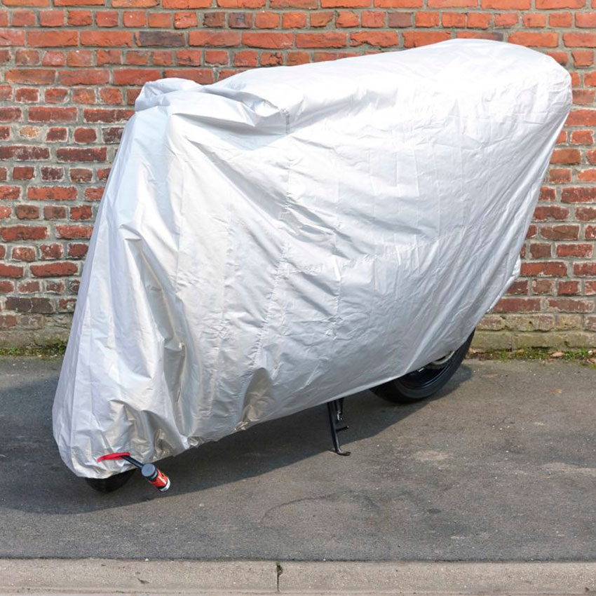 Προστατέψτε τη μηχανή σας από τον ήλιο, την σκόνη, την βροχή και το χιόνι και διατηρήστε την πάντα καθαρή και καινούργια. Κατασκευασμένη από 100% πολυεστέρα με χνουδωτό εσωτερικό για να μην κάνει ζημιά στο χρώμα. Διαθέτει λάστιχο για καλύτερη εφαρμογή. Χρώμα μουσαμά : Ασημί