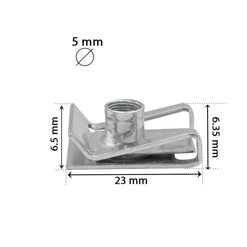 Παξιμάδι ασφαλείας με πάσο για το αμάξωμα του αυτοκινήτου για βίδα M5. Xρησιμοποιούνται συνήθως κατά μήκος της κάτω πλευράς του προφυλακτήρα ή του μαρσπιέ για τη στερέωση.