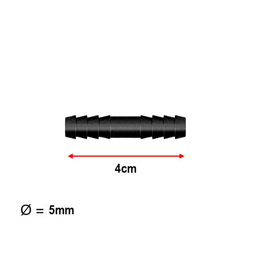 Πλαστικός σύνδεσμος Φ5 προέκτασης λαστιχένιων σωληνώσεων, με universal εφαρμογή. Μήκος 4cm.