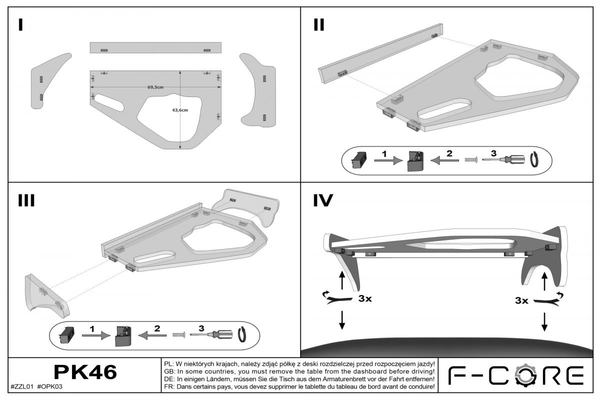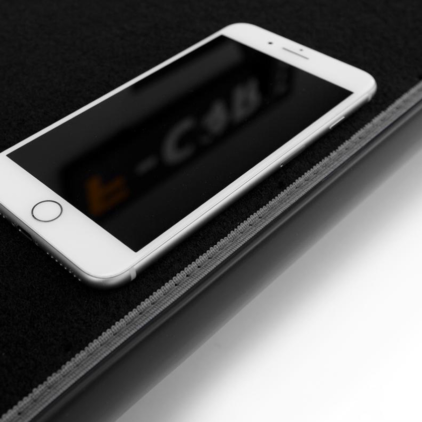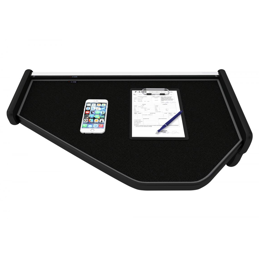 Τραπεζάκι ταμπλού φορτηγού κατασκευασμένο από ξύλινη πλάκα κομμένη με λέιζερ για να εξασφαλίζει την καλύτερη εφαρμογή στο ταμπλό. Διαθέτει αντιχαρακτικές μαλακές PVC άκρες για την αποφυγή γρατσουνιών και την αύξηση της πρόσφυσης στο ταμπλό όταν είναι στη θέση του και ένα αντιολισθητικό μοκέτα στο επάνω μέρος σε μαύρο χρώμα με γκρι ρέλι.
