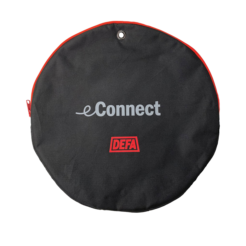 Τσάντα μεταφοράς/ αποθύκευσης καλωδίων φόρτισης eConnect Basic Bag από την Defa σε μαύρο χρώμα. Η τσάντα είναι κατάλληλη για όλα τα καλώδια φόρτισης και είναι κατασκευασμένη από ανθεκτικό και πυρίμαχο υλικό, με φερμουάρ για να κρατά το καλώδιο στη θέση του. Οι οπές αερισμού αποτρέπουν τη συσσώρευση υγρασίας στην τσάντα κατά την αποθήκευση και προστατεύουν τους ακροδέκτες του καλωδίου από τη διάβρωση. Επίσης, κρατά το καλώδιο μακριά από άλλα αντικείμενα στο αυτοκίνητό σας. Η τσάντα διαθέτει εσωτερική θήκη για το εγχειρίδιο χρήσης.