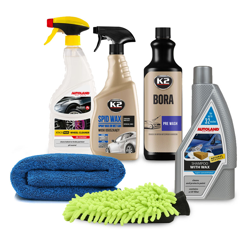 Σετ προσφοράς με είδη περιποίησης και καθαρισμού των εταιριών K2 και Autoland για τo εξωτερικό μέρος του οχήματός σας το οποίο αποτελείται από τα παρακάτω:
