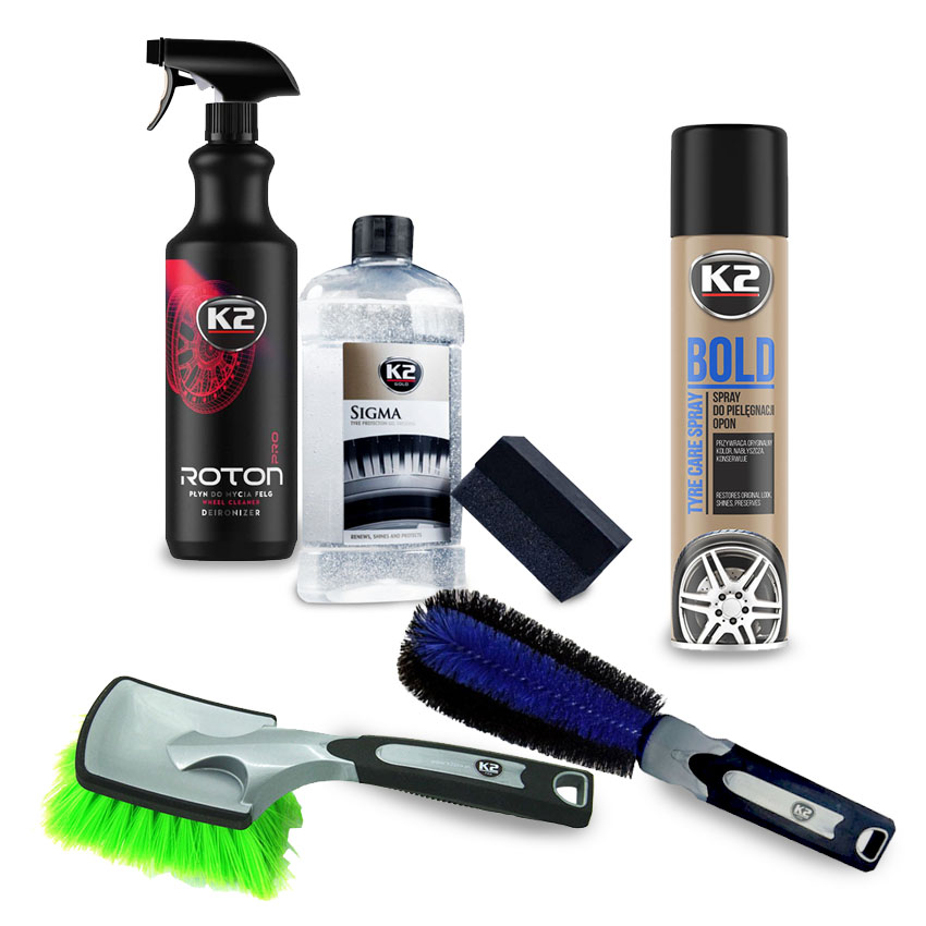 Σετ προσφοράς με είδη περιποίησης και καθαρισμού της εταιρίας K2 για τα ελαστικά και τις ζάντες του οχήματός σας το οποίο αποτελείται από τα παρακάτω:
