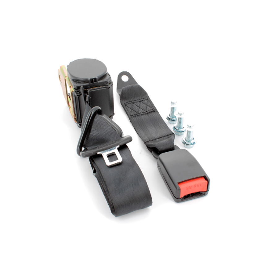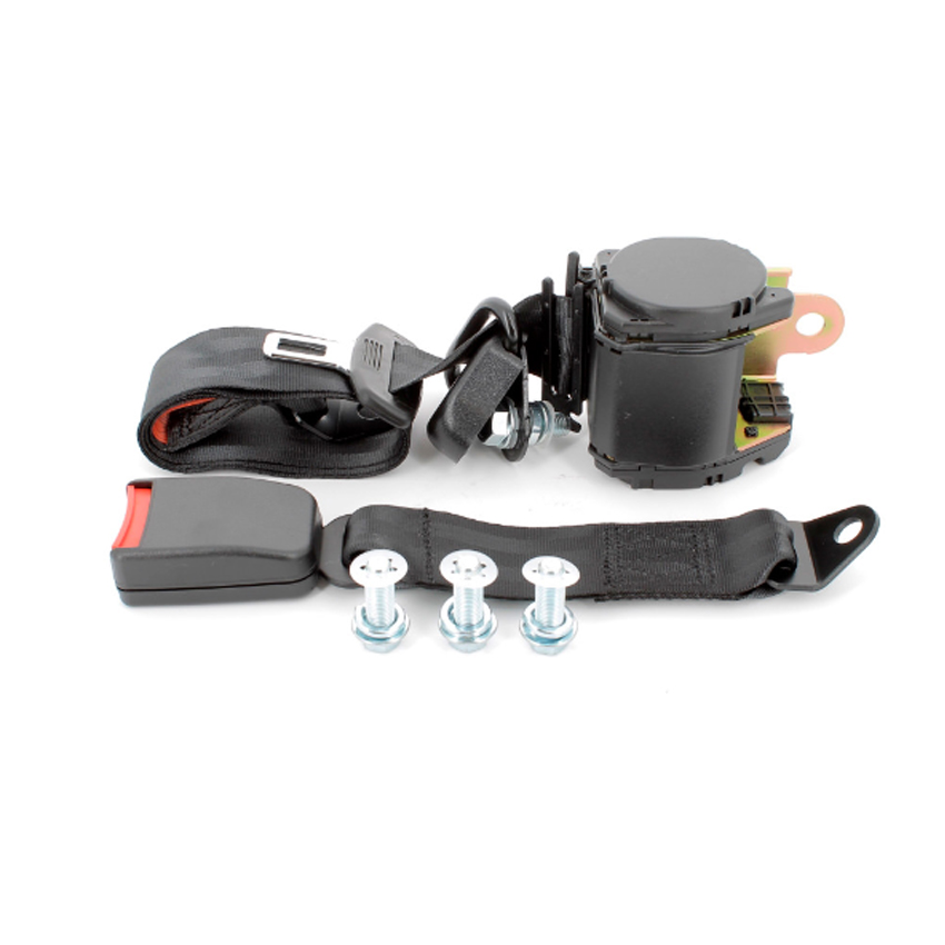 Ζώνη ασφαλείας 3 σημείων σε μαύρο χρώμα με μηχανισμό ανάσυρσης, συμμορφώνεται με τον κανονισμό E4-16R-0436232, εξασφαλίζοντας τη συμμόρφωσή της με τα διεθνή πρότυπα ασφαλείας. Έχει συνολικό μήκος 2900 mm, με αγκράφα 280 mm, παρέχοντας επαρκή και ρυθμιζόμενη συγκράτηση για τους επιβάτες.