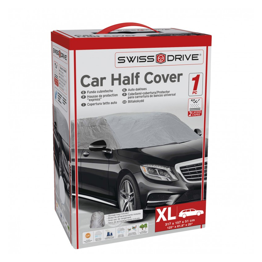Υψηλής ποιότητας ημικουκούλα από την Swissdrive. Η αδιάβροχη φύση του παρέχει προστασία και αντοχή στις ακτίνες UVA, τη βροχή, τον άνεμο, τη σκόνη, το χιόνι, τα περιττώματα των πουλιών και τα υπολείμματα των πεσμένων δέντρων. Το κάλυμμα έχει σχεδιαστεί για να αποτρέπει τις γρατζουνιές και να προστατεύει αποτελεσματικότερα. Διαθέτει επίσης οπές εξαερισμού, ώστε να μη δημιουργείται υγρασία μετά από βροχή ή σχηματισμός μούχλας. Διαθέτει νάιλον σακούλα με φερμουάρ, ώστε να αποθηκεύεται και να μεταφέρεται εύκολα.