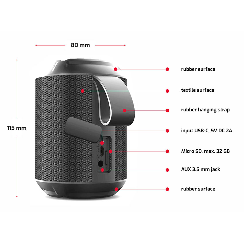 Διαστάσεις ηχείου: 8 x 8 x 11,5 cm