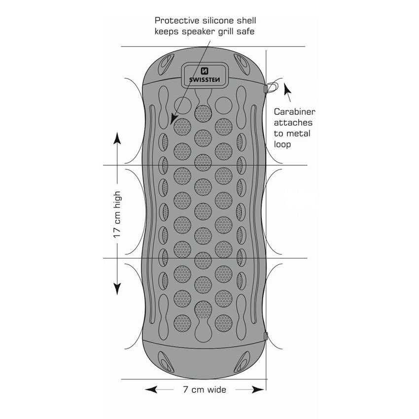 Οι διαστάσεις ηχείου: 17 x 7 x 7 cm