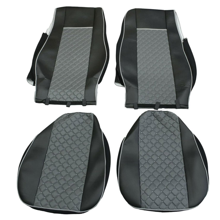 Καλύμματα μαύρου χρώματος με γκρι μοτίβο στο κέντρο, κατασκευασμένα από τεχνόδερμα υψηλής ποιότητας με 2mm αφρώδες υλικό για μεγαλύτερη άνεση για τα μπροστινά καθίσματα. Εξαιρετική εμφάνιση και μεγάλη αντοχή στο χρόνο. Κατάλληλα για καθίσματα εξοπλισμένα με πλευρικούς αερόσακους. Εύκολη τοποθέτηση. Πλένονται στο πλυντήριο.