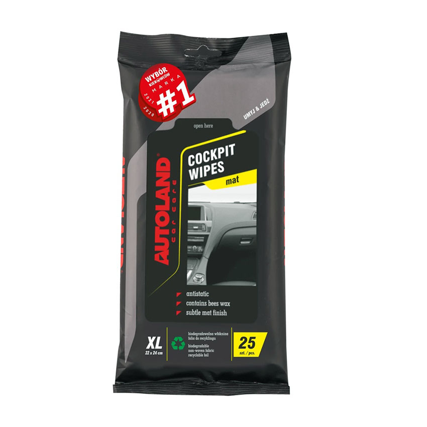 Υγρά μαντηλάκια χωρίς χνούδι εμποτισμένα με φυσικό κερί μέλισσας για τον καθαρισμό του ταμπλό και του εσωτερικού του αυτοκινήτου σας. Αφαιρεί αποτελεσματικά λεκέδες και σκόνη από όλα τα πλαστικά του εσωτερικού του αυτοκινήτου. Μετά την εφαρμογή αφήνει ένα ευχάριστο άρωμα και ένα αντιστατικό φιλμ για την προστασία από τη συσσώρευση σκόνης για πολλές ημέρες. Αντιαλλεργικό - δεν προκαλεί ερεθισμό.