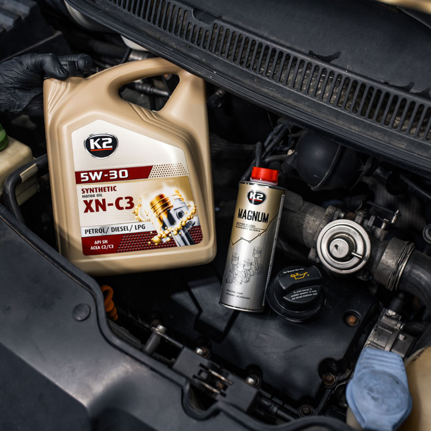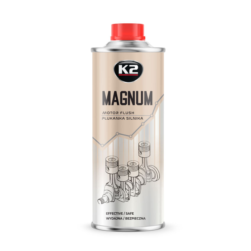 Καθαριστικό κινητήρα Magnum από την K2 είναι ένα προηγμένο καθαριστικό κινητήρα που έχει σχεδιαστεί για την αποτελεσματική και ασφαλή απομάκρυνση των εναποθέσεων άνθρακα, της λάσπης και όλων των ρύπων από το σύστημα λίπανσης. Χάρη στην καινοτόμο σύνθεσή του φτάνει ακόμα και στα πιο δυσπρόσιτα σημεία του κινητήρα, καθαρίζοντας σε βάθος τις αυλακώσεις των δακτυλίων των εμβόλων, τις διόδους λαδιού και ολόκληρο το εσωτερικό του κινητήρα. Δεν απομακρύνει μόνο τους ρύπους, αλλά παρέχει επίσης προστασία από τη διάβρωση και τη φθορά, χάρη στους πρόσθετους λιπαντικούς και αντιδιαβρωτικούς παράγοντες.