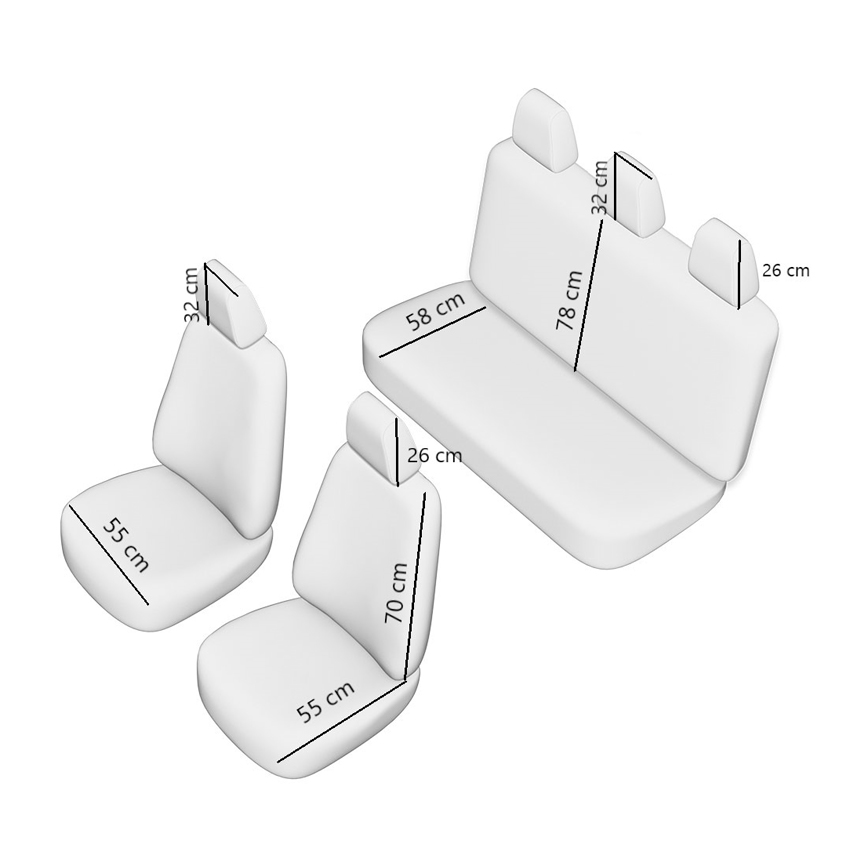 Τα καλύμματα διαθέτουν εργονομικό σχεδιασμό με επένδυση από αφρό και στις δύο πλευρές πάχους 8/25 mm, που προσφέρει οδηγική άνεση και προστασία της μέσης και της πλάτης. Η τοποθέτηση των καλυμμάτων είναι απλή και γρήγορη.