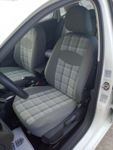 Καλύμματα 5 θέσεων από υψηλής ποιότητας υφάσματος σε μαύρο - γκρι χρώμα, ειδικά σχεδιασμένα για να ταιριάζουν ακριβώς σε Volkswagen Polo (Mk6) μοντ. 2017+, έκδοση με υποβραχιόνιο στα πίσω καθίσματα. Διαθέτουν εξαιρετική εμφάνιση και μεγάλη αντοχή στο χρόνο. Κατάλληλα για καθίσματα εξοπλισμένα με πλευρικούς αερόσακους.