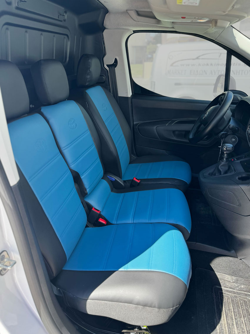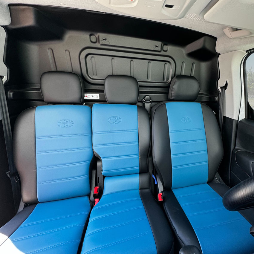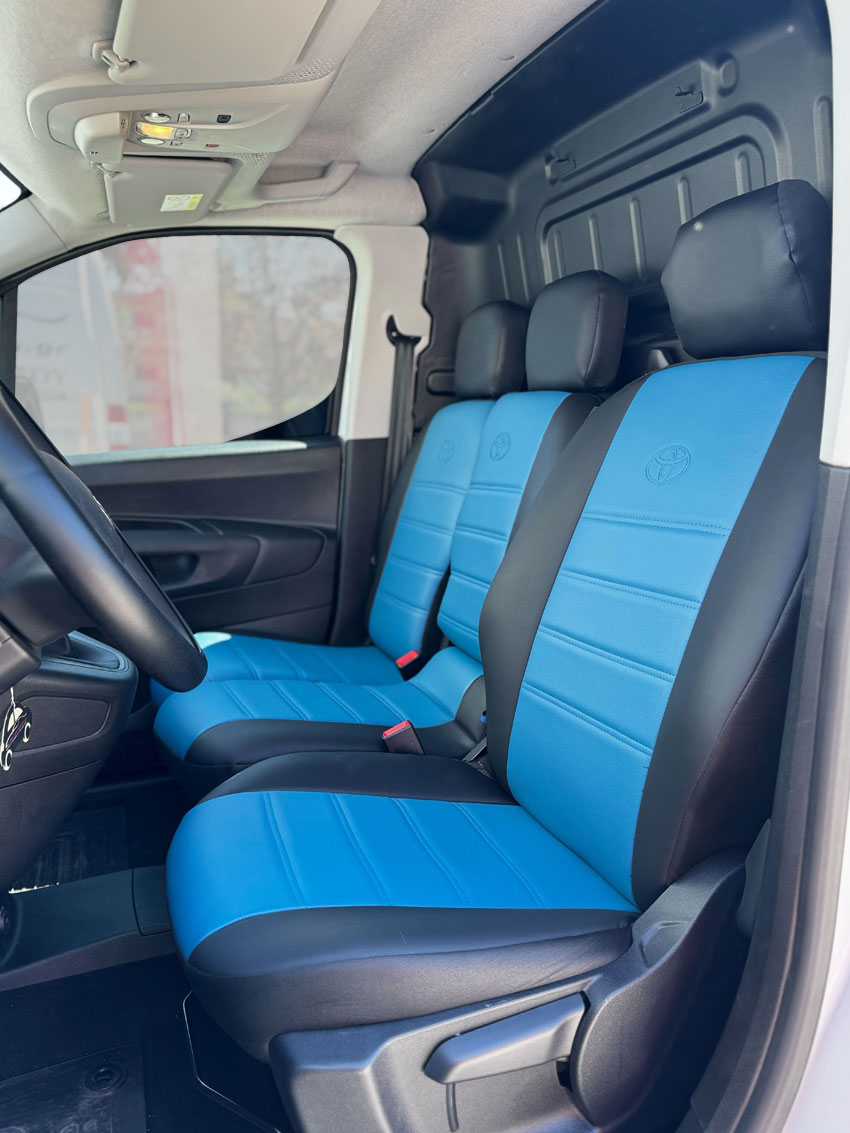 Καλύμματα καθισμάτων τεχνόδερμα μαύρο-μπλε για Toyota Proace 3 θέσεων