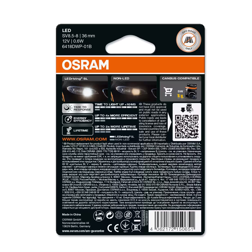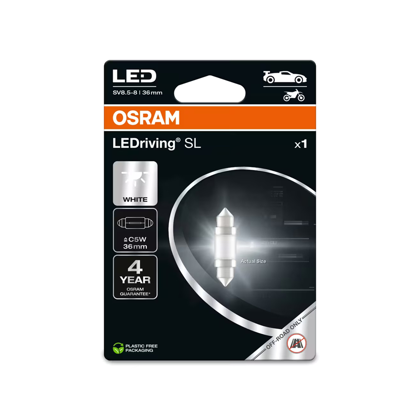Η λάμπα LEDriving® SL από την Osram προσφέρει ένα μοντέρνο και έντονο φως με θερμοκρασία χρώματος έως 6.000 Kelvin. Σε σύγκριση με τους τυπικούς λαμπτήρες, αυτοί οι λαμπτήρες LED αναβάθμισης καταναλώνουν έως και 80% λιγότερη ενέργεια. Αυτά τα προϊόντα δεν διαθέτουν έγκριση ECE και δεν πρέπει να χρησιμοποιούνται σε δημόσιους δρόμους σε καμία εξωτερική εφαρμογή.