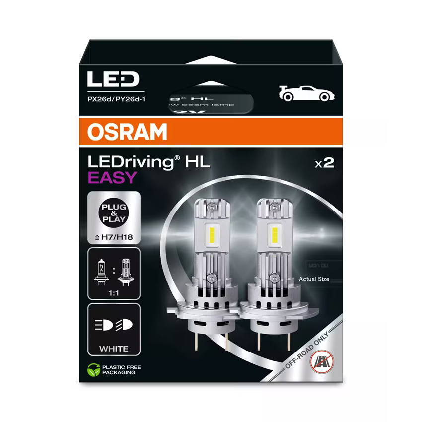 Οι λαμπτήρες LEDriving® HL Easy υψηλής και μεσαίας σκάλας της OSRAM αντικαθιστούν τους συμβατικούς λαμπτήρες αλογόνου. Με την τελευταία τεχνολογία LED και πολύ συμπαγή σχεδιασμό, αυτοί οι λαμπτήρες επιτρέπουν υψηλή συμβατότητα και εύκολη εγκατάσταση για αυτοκίνητα με τους αντίστοιχους τύπους λαμπτήρων αλογόνου. Ένας βελτιστοποιημένος ανεμιστήρας υψηλής ταχύτητας εξασφαλίζει ενεργή ψύξη, καθιστώντας δυνατή υψηλότερη απόδοση και υψηλού επιπέδου απόδοση φωτός χάρη στη μεγιστοποιημένη απαγωγή θερμότητας.