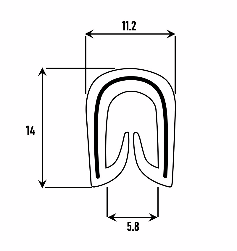 Λάστιχο φιλέτο καρφωτό μαύρο 14x11.2mm 1m