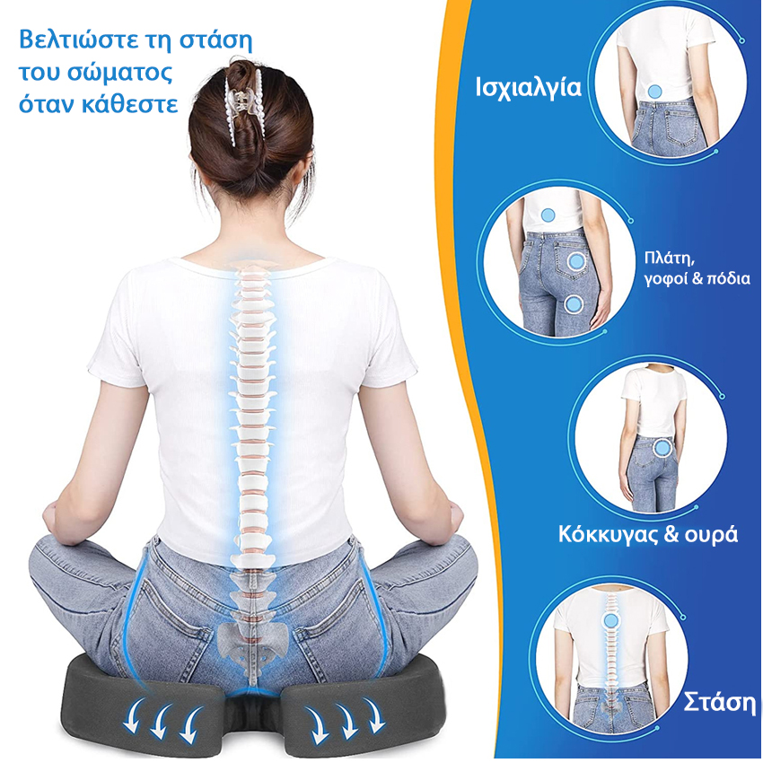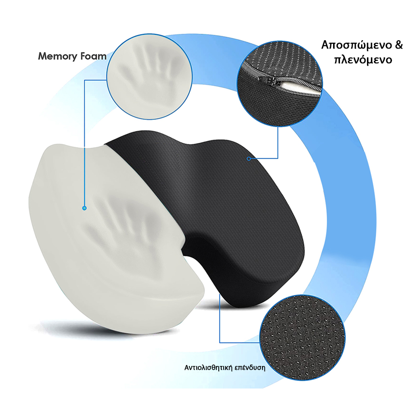 Μαξιλάρι καθίσματος ανατομικό κατάλληλο για όλα τα είδη καθισμάτων, καρέκλες γραφείου, αυτοκίνητα, αναπηρικά αμαξίδια, αεροπλάνα, καρέκλες gaming, διαλογισμό κ.ά.