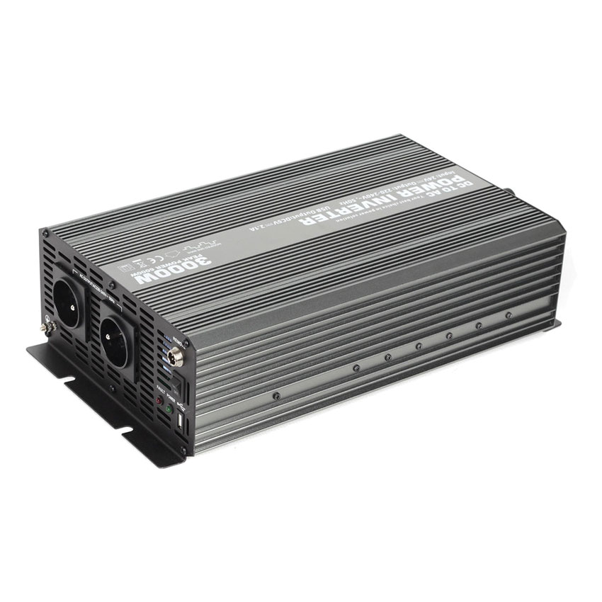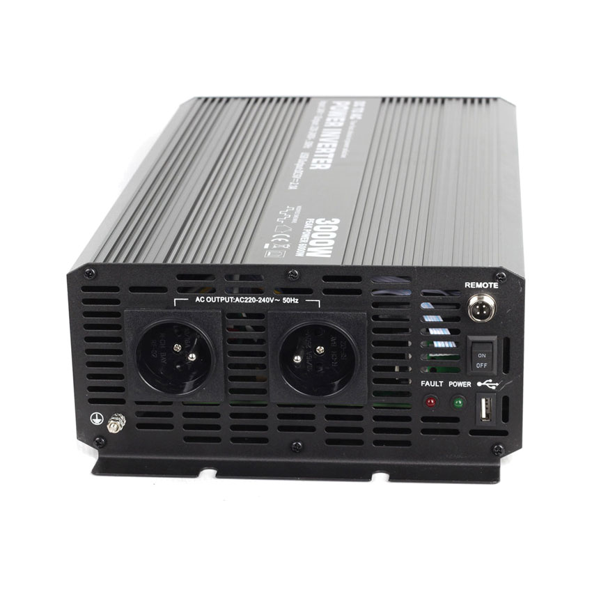 Μετατροπέας ισχύος 3000W κατάλληλος για οχήματα με δίκτυο 24V (φορτηγά), για συσκευές που τροφοδοτούνται με 230V, όπως φούρνοι μικροκυμάτων, βραστήρες, λέβητες, αντλίες, λάμπες, εργαλεία χειρός, ψυγεία. Το ρεύμα εξόδου έχει τη μορφή τροποποιημένου ημιτονοειδούς (ορθογώνια κυματομορφή) με συχνότητα 50Hz / 230V, είναι εξοπλισμένος με έξοδο USB για τη φόρτιση συσκευών.