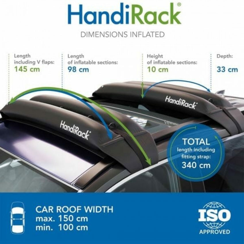 Φουσκωτές μπάρες οροφής HANDIRACK, κατασκευασμένες από υψηλής ποιότητας νάιλον ύφασμα 400D. Ιδανικές για τη μεταφορά εξοπλισμού, αποσκευών, εργαλείων, καθιστώντας τες μία εξαιρετική επιλογή για καλοκαιρινές/χειμερινές αποδράσεις, καθώς και για όσους λατρεύουν τα υπαίθρια sport και τις εξορμήσεις στην εξοχή.