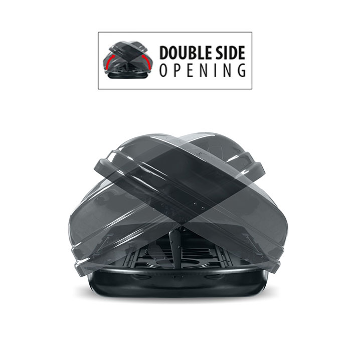 Μπαγκαζιέρα οροφής κομψού σχεδιασμού με στρογγυλοποιημένο design σε μαύρο χρώμα, γυαλιστερή υφή και χωρητικότητα φορτίου 450 lt. Η σειρά DIAMOND της MENABO είναι η κατάλληλη επιλογή για καθημερινή χρήση σε οτιδήποτε θέλετε να μεταφέρετε με ασφάλεια. Η μπαγκαζιέρα έχει αεροτομή στο πίσω μέρος της για να μπορεί να επιτευχθεί αεροδυναμική αντίσταση. Διαθέτει ειδικές αναμονές, στο κάτω μέρος της, για την σωστή τοποθέτηση στις μπάρες οροφής, καθώς επίσης και αντικλεπτικό σύστημα ασφαλείας με διπλό κλείδωμα 2 σημείων. Για πρόσθετη ασφάλεια στο εσωτερικό της μπαγκαζιέρας, διαθέτει μεταλλικά στηρίγματα για στερέωση ιμάντων πρόσδεσης φορτίου. Mε σύστημα ανοίγματος από τις δύο πλευρές, για άμεση πρόσβαση από οποιαδήποτε μεριά του οχήματος (δεξιά/αριστερά). Εύκολη και γρήγορη τοποθέτηση/αφαίρεση της μπαγκαζιέρας σε μπάρες οροφής με σύστημα δέσης T-Screw Fixing System (6360/MB). Για να τοποθετήσετε τη μπαγκαζιέρα σε μπάρες διαστάσεων έως 80x35mm (max) θα χρειαστείτε τον προαιρετικό σύνδεσμο γρήγορης απασφάλισης συστήματος δέσης 8250/MB (L-quick fixing hooks system). Οι μπάρες οροφής με σύστημα δέσης T-track, είναι συμβατές και μπορούν να τοποθετηθούν συρταρωτά επιπρόσθετα συμπληρωματικά εξαρτήματα, όπως πχ. πτερύγια στερέωσης για φορτία, βάσεις μεταφοράς ποδηλάτων, σκι, snowboard, κανό, κρίκους δεσίματος, κ.ά.).