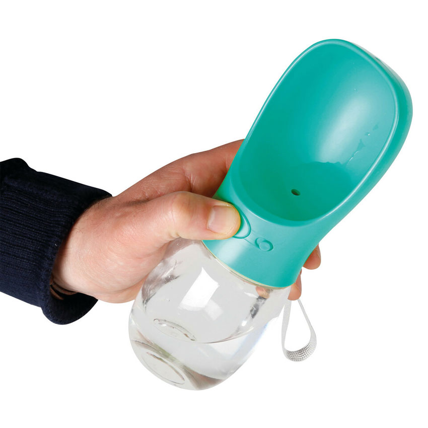 Μπουκάλι νερού κατοικιδίων, κατασκευασμένo από ασφαλή, μη τοξικά υλικά, κατάλληλo για να πίνουν νερό οι μικροί μας φίλοι, όπου κι αν βρίσκεστε εύκολα και γρήγορα. Γεμίζετε την φούσκα του προϊόντος με νερό και με ένα κλικ - πατώντας το κουμπί απελευθερώνετε το υγρό στοιχείο στην υποδοχή νερού στο κάτω μέρος. Ασφαλίζει ώστε να μη στάζει όταν δεν βρίσκεται σε χρήση και καθαρίζεται εύκολα. Διαθέτει λουράκι για να μπορείτε να το κρεμάσετε κατά την έξοδο σας. Κατάλληλο για όλα τα κατοικίδια ζώα (σκύλο, γάτα κ.α), για βόλτα σε πάρκο, θάλασσα, βουνό κ.α.