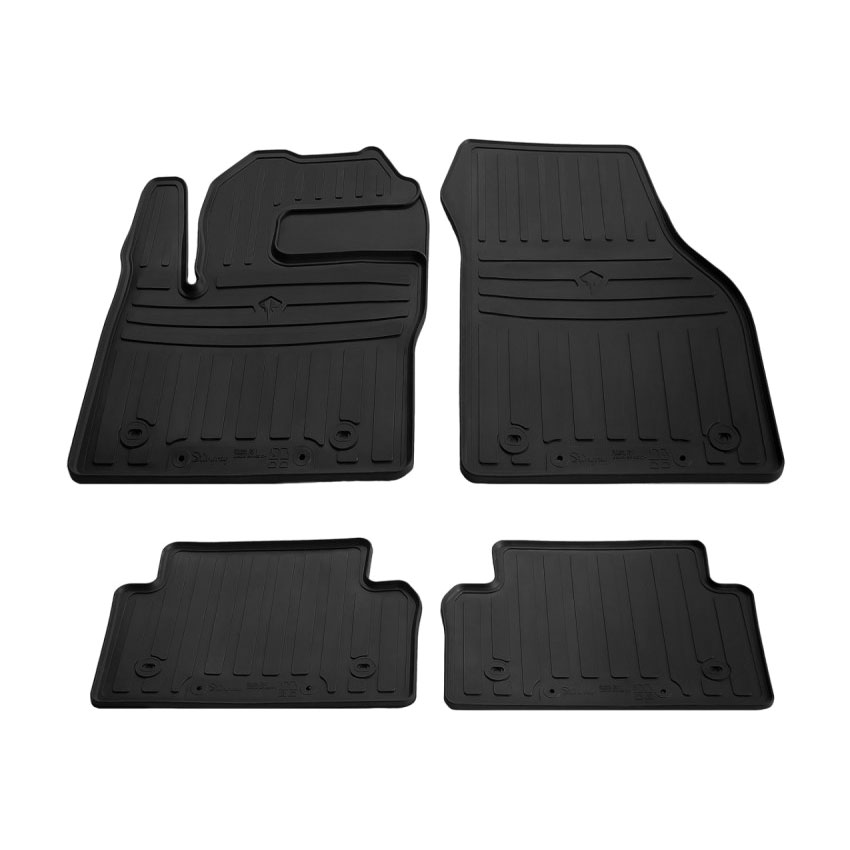Πατάκια δαπέδου λαστιχένια, απαλλαγμένα από οσμές και με μεγάλη διάρκεια ζωής. Το χείλος (περίπου 1cm) και η κυψελωτή επιφάνεια συγκρατούν νερά, λάσπες, χώματα και χιόνι διατηρώντας το εσωτερικό του οχήματος σας καθαρό. Τα πατάκια είναι αντιολισθητικά και καθαρίζουν πολύ εύκολα. Διαθέτουν άψογη εφαρμογή και clips σταθεροποίησης.