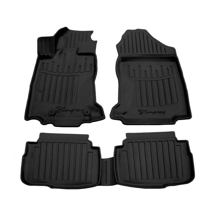 Πατάκια δαπέδου λαστιχένια, απαλλαγμένα από οσμές και με μεγάλη διάρκεια ζωής. Το χείλος (περίπου 1cm) και η κυψελωτή επιφάνεια συγκρατούν νερά, λάσπες, χώματα και χιόνι διατηρώντας το εσωτερικό του οχήματος σας καθαρό. Τα πατάκια είναι αντιολισθητικά και καθαρίζουν πολύ εύκολα. Διαθέτουν άψογη εφαρμογή και clips σταθεροποίησης.