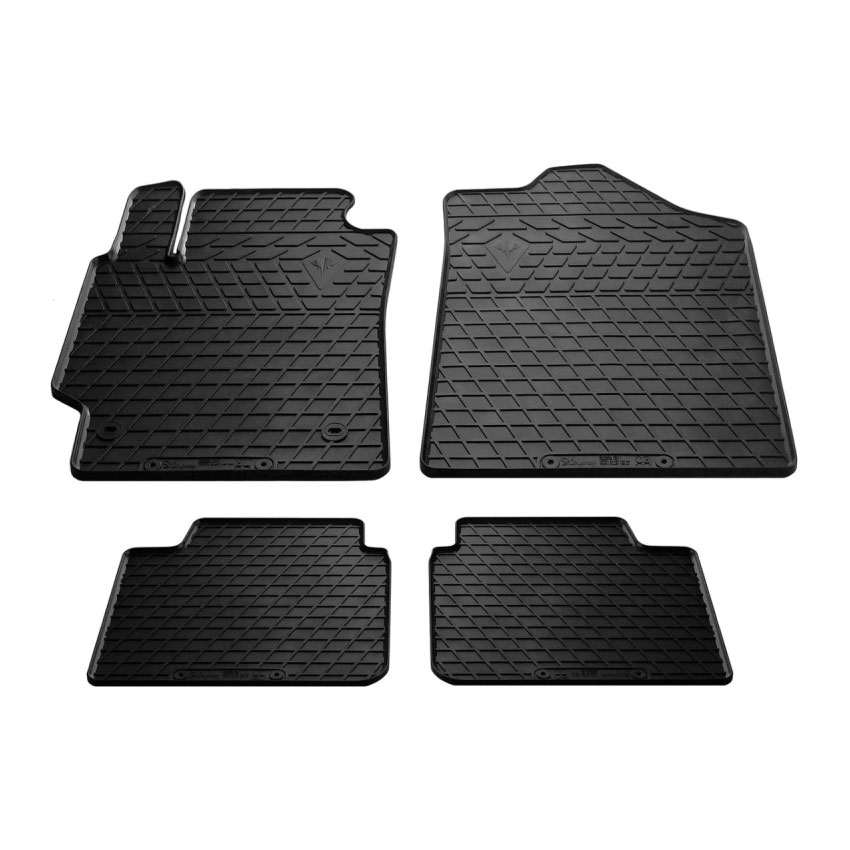 Πατάκια δαπέδου λαστιχένια, απαλλαγμένα από οσμές και με μεγάλη διάρκεια ζωής. Το χείλος (περίπου 1cm) και η κυψελωτή επιφάνεια συγκρατούν νερά, λάσπες, χώματα και χιόνι διατηρώντας το εσωτερικό του οχήματος σας καθαρό. Τα πατάκια είναι αντιολισθητικά και καθαρίζουν πολύ εύκολα. Διαθέτουν άψογη εφαρμογή και clips σταθεροποίησης.