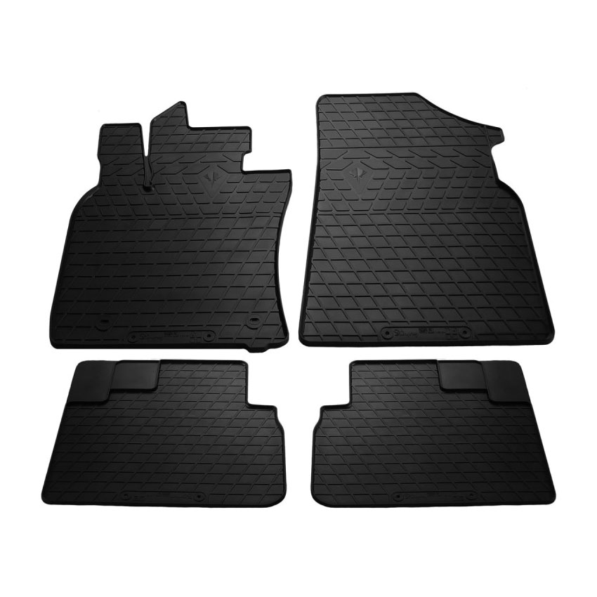 Πατάκια δαπέδου λαστιχένια, απαλλαγμένα από οσμές και με μεγάλη διάρκεια ζωής. Το χείλος (περίπου 1cm) και η κυψελωτή επιφάνεια συγκρατούν νερά, λάσπες, χώματα και χιόνι διατηρώντας το εσωτερικό του οχήματος σας καθαρό. Τα πατάκια είναι αντιολισθητικά και καθαρίζουν πολύ εύκολα. Διαθέτουν άψογη εφαρμογή και clips σταθεροποίησης.