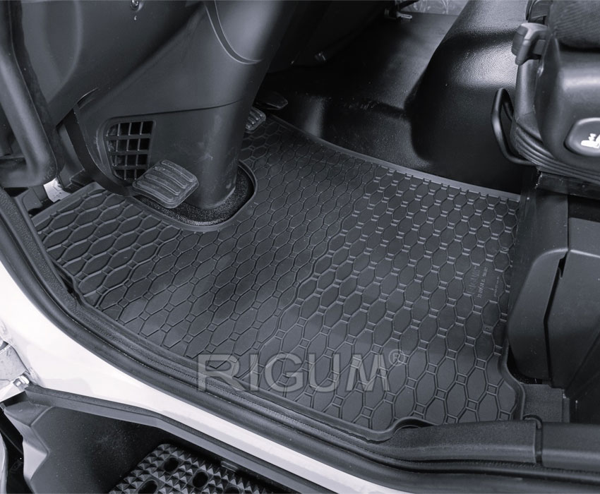 Πατάκια δαπέδου Rigum, κατασκευασμένα από υψηλής ποιότητας άοσμο ανθεκτικό καουτσούκ, φιλικό προς το περιβάλλον. Αντιολισθητικά και πολύ εύκολα στο καθάρισμα. Το χείλος που διαθέτουν (περίπου 1cm) και η ειδικά διαμορφωμένη κυψελωτή επιφάνεια συγκρατούν νερά, λάσπες, χώματα και χιόνι, διατηρώντας καθαρό το εσωτερικό του αυτοκινήτου. Διαθέτουν άψογη εφαρμογή.