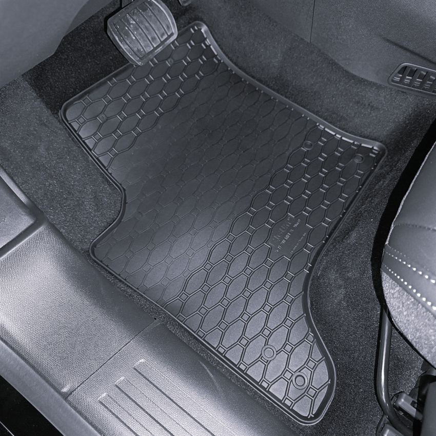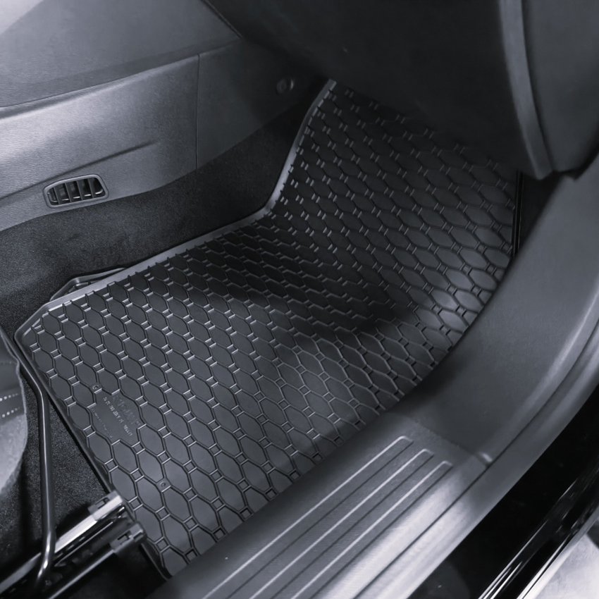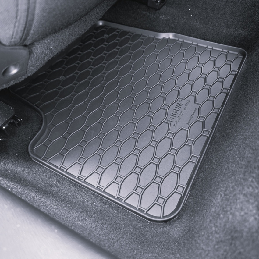 Πατάκια δαπέδου Rigum, κατασκευασμένα από υψηλής ποιότητας άοσμο ανθεκτικό καουτσούκ, φιλικό προς το περιβάλλον. Αντιολισθητικά και πολύ εύκολα στο καθάρισμα. Το χείλος που διαθέτουν (περίπου 1cm) και η ειδικά διαμορφωμένη κυψελωτή επιφάνεια συγκρατούν νερά, λάσπες, χώματα και χιόνι, διατηρώντας καθαρό το εσωτερικό του αυτοκινήτου. Διαθέτουν άψογη εφαρμογή.