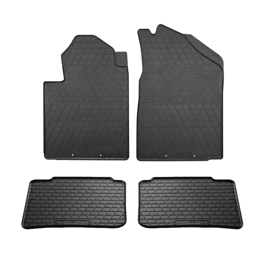 Πατάκια δαπέδου λαστιχένια, απαλλαγμένα από οσμές και με μεγάλη διάρκεια ζωής. Το χείλος (περίπου 1cm) και η κυψελωτή επιφάνεια συγκρατούν νερά, λάσπες, χώματα και χιόνι διατηρώντας το εσωτερικό του οχήματος σας καθαρό. Τα πατάκια είναι αντιολισθητικά και καθαρίζουν πολύ εύκολα. Διαθέτουν άψογη εφαρμογή και clips σταθεροποίησης.