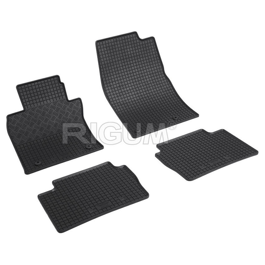 Πατάκια δαπέδου σετ με πατάκι πορτ μπαγκάζ, Rigum, κατασκευασμένα από υψηλής ποιότητας άοσμο ανθεκτικό καουτσούκ, φιλικό προς το περιβάλλον. Αντιολισθητικά και πολύ εύκολα στο καθάρισμα. Το χείλος που διαθέτουν (περίπου 1cm τα πατάκια δαπέδου / περίπου 2cm το πατάκι πορτ μπαγκάζ) και η ειδικά διαμορφωμένη κυψελωτή επιφάνεια συγκρατούν νερά, λάσπες, χώματα και χιόνι, διατηρώντας καθαρό το εσωτερικό του αυτοκινήτου. Διαθέτουν άψογη εφαρμογή.