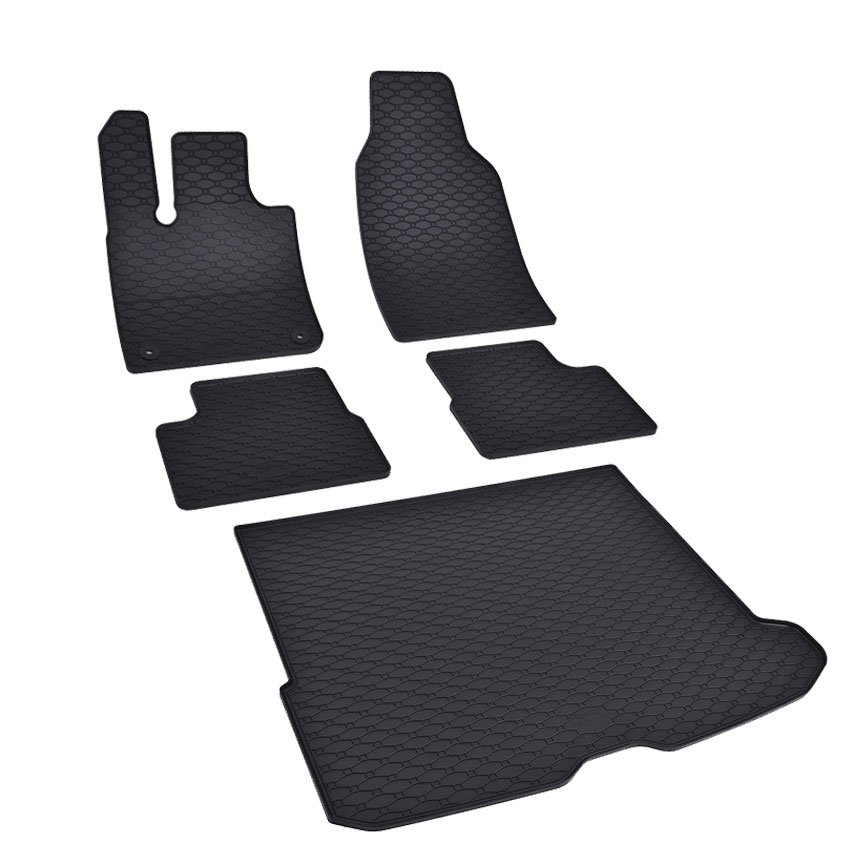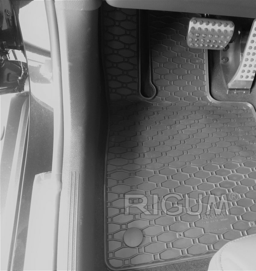 Πατάκια δαπέδου σετ με πατάκι πορτ μπαγκάζ, Rigum, κατασκευασμένα από υψηλής ποιότητας άοσμο ανθεκτικό καουτσούκ, φιλικό προς το περιβάλλον. Αντιολισθητικά και πολύ εύκολα στο καθάρισμα. Το χείλος που διαθέτουν (περίπου 1cm τα πατάκια δαπέδου / περίπου 2cm το πατάκι πορτ μπαγκάζ) και η ειδικά διαμορφωμένη κυψελωτή επιφάνεια συγκρατούν νερά, λάσπες, χώματα και χιόνι, διατηρώντας καθαρό το εσωτερικό του αυτοκινήτου. Διαθέτουν άψογη εφαρμογή.