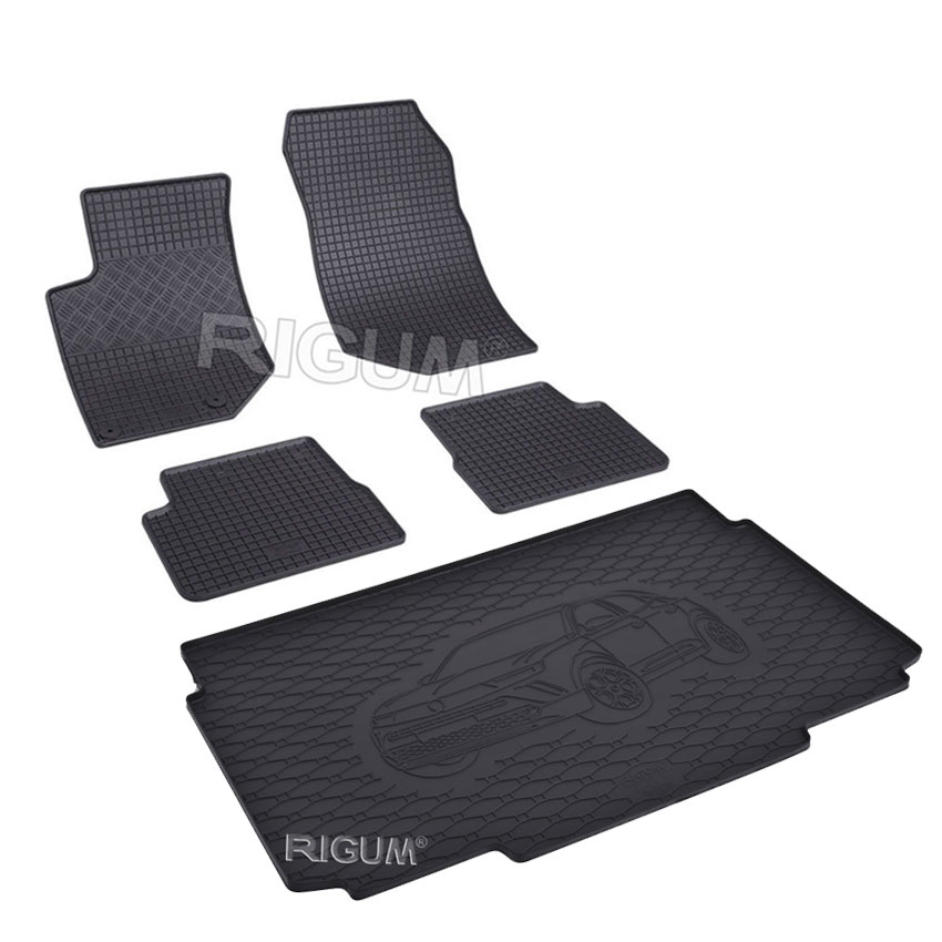 Πατάκια δαπέδου σετ με πατάκι πορτ μπαγκάζ, Rigum, κατασκευασμένα από υψηλής ποιότητας άοσμο ανθεκτικό καουτσούκ, φιλικό προς το περιβάλλον. Αντιολισθητικά και πολύ εύκολα στο καθάρισμα. Το χείλος που διαθέτουν (περίπου 1cm τα πατάκια δαπέδου / περίπου 2cm το πατάκι πορτ μπαγκάζ) και η ειδικά διαμορφωμένη κυψελωτή επιφάνεια συγκρατούν νερά, λάσπες, χώματα και χιόνι, διατηρώντας καθαρό το εσωτερικό του αυτοκινήτου. Διαθέτουν άψογη εφαρμογή.
