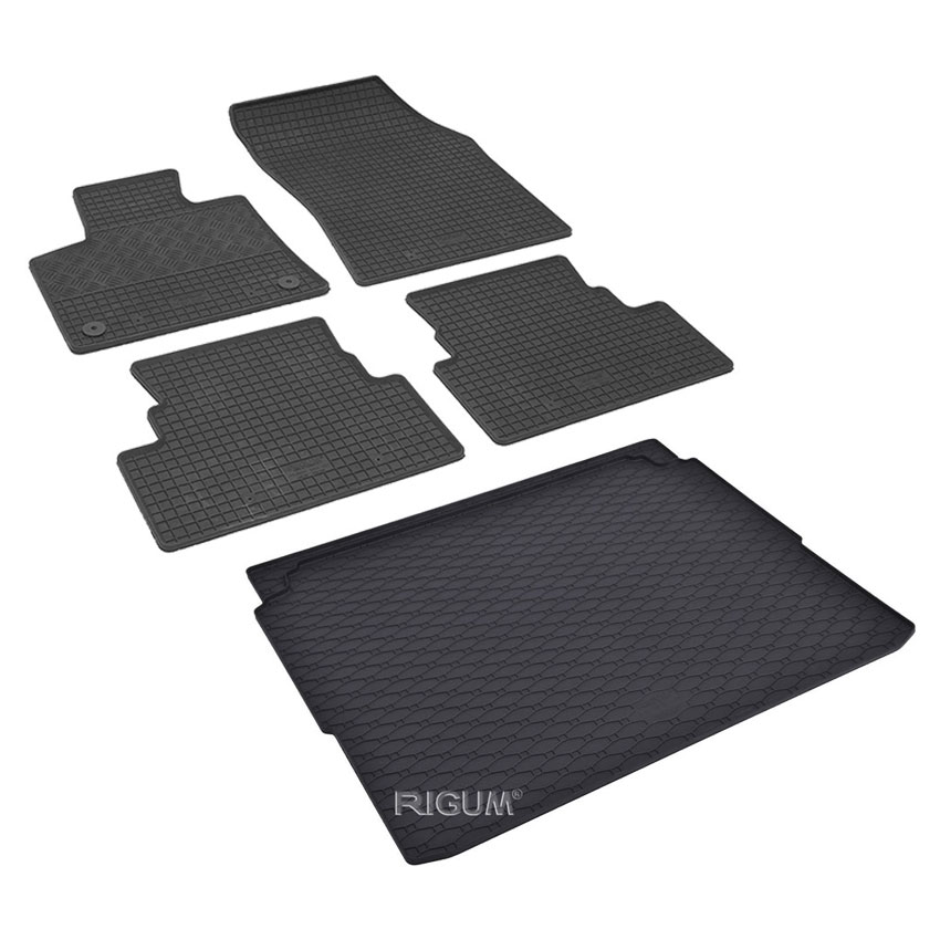 Πατάκια δαπέδου σετ με πατάκι πορτ μπαγκάζ, Rigum, κατασκευασμένα από υψηλής ποιότητας άοσμο ανθεκτικό καουτσούκ, φιλικό προς το περιβάλλον. Αντιολισθητικά και πολύ εύκολα στο καθάρισμα. Το χείλος που διαθέτουν (περίπου 1cm τα πατάκια δαπέδου / περίπου 2cm το πατάκι πορτ μπαγκάζ) και η ειδικά διαμορφωμένη κυψελωτή επιφάνεια συγκρατούν νερά, λάσπες, χώματα και χιόνι, διατηρώντας καθαρό το εσωτερικό του αυτοκινήτου. Διαθέτουν άψογη εφαρμογή.