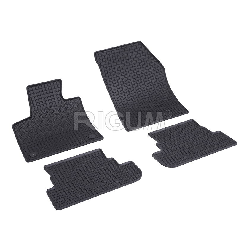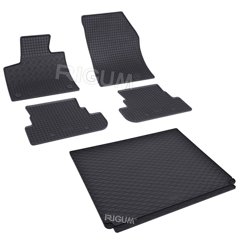 Πατάκια δαπέδου σετ με πατάκι πορτ μπαγκάζ, Rigum, κατασκευασμένα από υψηλής ποιότητας άοσμο ανθεκτικό καουτσούκ, φιλικό προς το περιβάλλον. Αντιολισθητικά και πολύ εύκολα στο καθάρισμα. Το χείλος που διαθέτουν (περίπου 1cm τα πατάκια δαπέδου / περίπου 2cm το πατάκι πορτ μπαγκάζ)  και η ειδικά διαμορφωμένη κυψελωτή επιφάνεια συγκρατούν νερά, λάσπες, χώματα και χιόνι, διατηρώντας καθαρό το εσωτερικό του αυτοκινήτου. Διαθέτουν άψογη εφαρμογή.