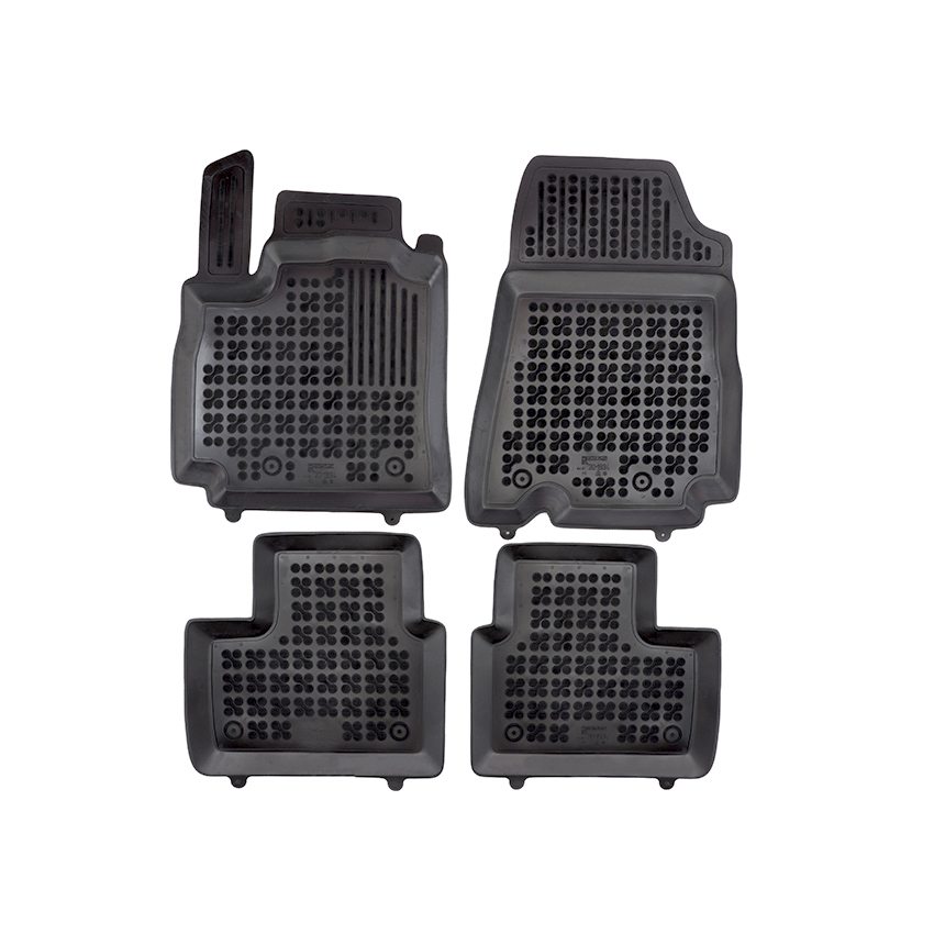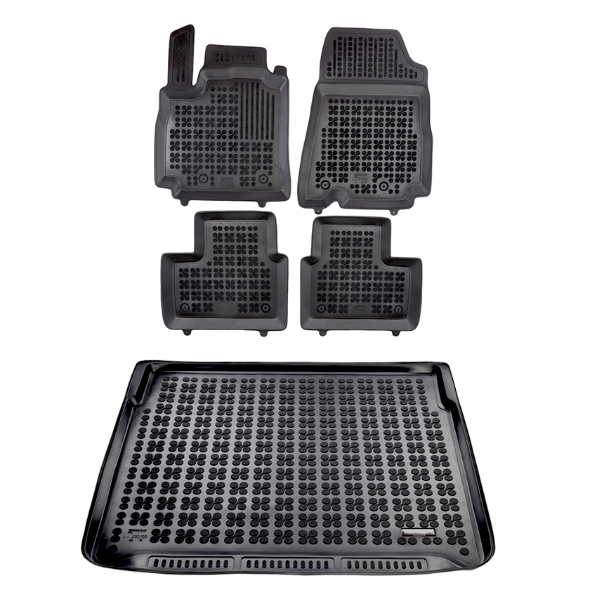 Πατάκια δαπέδου σετ με πατάκι πορτ μπαγκάζ τύπου σκαφάκιαRezaw , κατασκευασμένα από υψηλής ποιότητας άοσμο ανθεκτικό καουτσούκ, φιλικό προς το περιβάλλον. Αντιολισθητικά και πολύ εύκολα στο καθάρισμα. Το χείλος που διαθέτουν (περίπου 3 - 4 cm τα πατάκια δαπέδου / περίπου 4 - 6cm το πατάκι πορτ μπαγκάζ)  και η ειδικά διαμορφωμένη επιφάνεια συγκρατούν νερά, λάσπες, χώματα και χιόνι, διατηρώντας καθαρό το εσωτερικό του αυτοκινήτου. Διαθέτουν άψογη εφαρμογή.