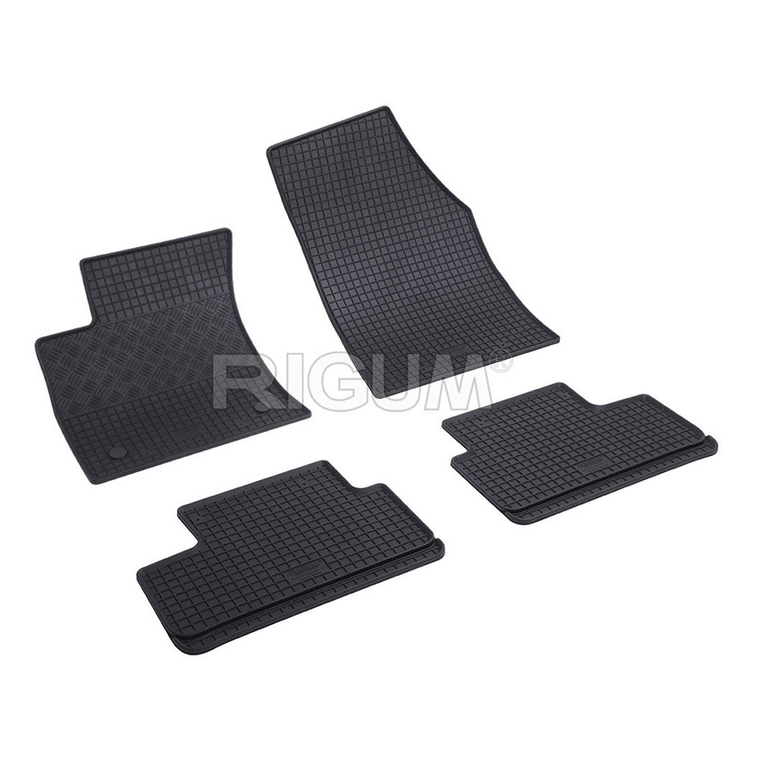 Πατάκια δαπέδου σετ με πατάκι πορτ μπαγκάζ, Rigum, κατασκευασμένα από υψηλής ποιότητας άοσμο ανθεκτικό καουτσούκ, φιλικό προς το περιβάλλον. Αντιολισθητικά και πολύ εύκολα στο καθάρισμα. Το χείλος που διαθέτουν (περίπου 1cm τα πατάκια δαπέδου / περίπου 2cm το πατάκι πορτ μπαγκάζ)  και η ειδικά διαμορφωμένη κυψελωτή επιφάνεια συγκρατούν νερά, λάσπες, χώματα και χιόνι, διατηρώντας καθαρό το εσωτερικό του αυτοκινήτου. Διαθέτουν άψογη εφαρμογή.