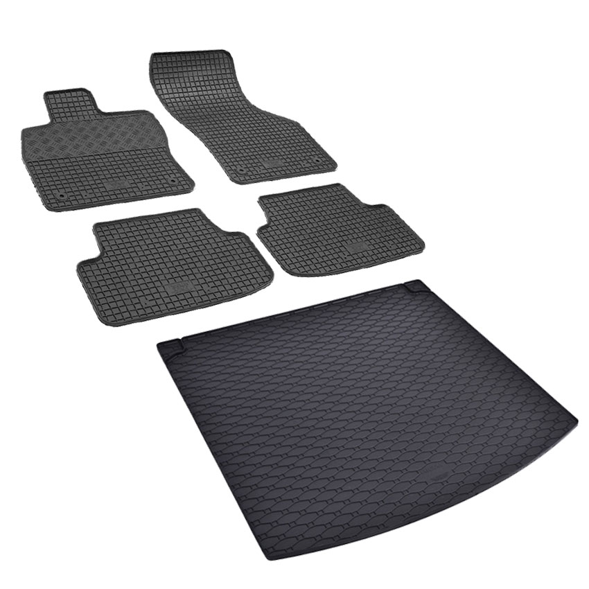 Πατάκια δαπέδου σετ με πατάκι πορτ μπαγκάζ, Rigum, κατασκευασμένα από υψηλής ποιότητας άοσμο ανθεκτικό καουτσούκ, φιλικό προς το περιβάλλον. Αντιολισθητικά και πολύ εύκολα στο καθάρισμα. Το χείλος που διαθέτουν (περίπου 1cm τα πατάκια δαπέδου / περίπου 2cm το πατάκι πορτ μπαγκάζ) και η ειδικά διαμορφωμένη κυψελωτή επιφάνεια συγκρατούν νερά, λάσπες, χώματα και χιόνι, διατηρώντας καθαρό το εσωτερικό του αυτοκινήτου. Διαθέτουν άψογη εφαρμογή.