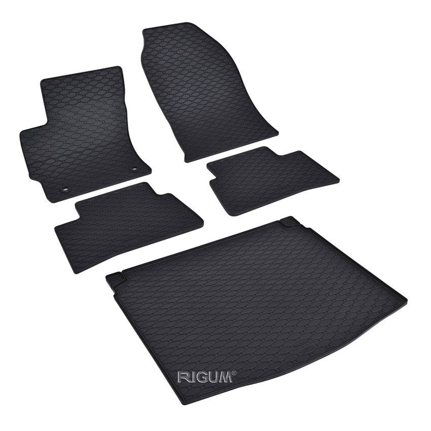 Πατάκια δαπέδου σετ με πατάκι πορτ μπαγκάζ, Rigum, κατασκευασμένα από υψηλής ποιότητας άοσμο ανθεκτικό καουτσούκ, φιλικό προς το περιβάλλον. Αντιολισθητικά και πολύ εύκολα στο καθάρισμα. Το χείλος που διαθέτουν (περίπου 1cm τα πατάκια δαπέδου / περίπου 2cm το πατάκι πορτ μπαγκάζ) και η ειδικά διαμορφωμένη κυψελωτή επιφάνεια συγκρατούν νερά, λάσπες, χώματα και χιόνι, διατηρώντας καθαρό το εσωτερικό του αυτοκινήτου. Διαθέτουν άψογη εφαρμογή.