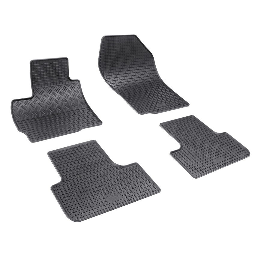Πατάκια δαπέδου σετ με πατάκι πορτ μπαγκάζ, Rigum, κατασκευασμένα από υψηλής ποιότητας άοσμο ανθεκτικό καουτσούκ, φιλικό προς το περιβάλλον. Αντιολισθητικά και πολύ εύκολα στο καθάρισμα. Το χείλος που διαθέτουν (περίπου 1cm τα πατάκια δαπέδου / περίπου 2cm το πατάκι πορτ μπαγκάζ)  και η ειδικά διαμορφωμένη κυψελωτή επιφάνεια συγκρατούν νερά, λάσπες, χώματα και χιόνι, διατηρώντας καθαρό το εσωτερικό του αυτοκινήτου. Διαθέτουν άψογη εφαρμογή.