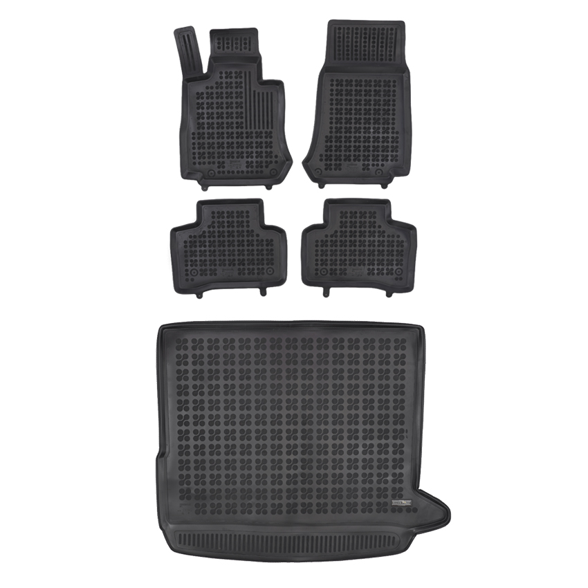 Πατάκια δαπέδου σετ με πατάκι πορτ μπαγκάζ τύπου σκαφάκια, κατασκευασμένα από υψηλής ποιότητας άοσμο ανθεκτικό καουτσούκ, φιλικό προς το περιβάλλον. Αντιολισθητικά και πολύ εύκολα στο καθάρισμα. Το χείλος που διαθέτουν (περίπου 3 - 4 cm τα πατάκια δαπέδου / περίπου 4 - 6cm το πατάκι πορτ μπαγκάζ) και η ειδικά διαμορφωμένη επιφάνεια συγκρατούν νερά, λάσπες, χώματα και χιόνι, διατηρώντας καθαρό το εσωτερικό του αυτοκινήτου. Διαθέτουν άψογη εφαρμογή.