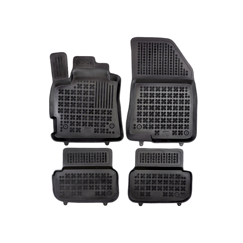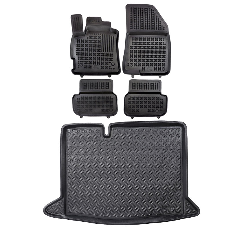 Πατάκια δαπέδου σετ με πατάκι πορτ μπαγκάζ τύπου σκαφάκια, Rezaw , κατασκευασμένα από υψηλής ποιότητας άοσμο ανθεκτικό καουτσούκ, φιλικό προς το περιβάλλον. Αντιολισθητικά και πολύ εύκολα στο καθάρισμα. Το χείλος που διαθέτουν (περίπου 3 - 4 cm τα πατάκια δαπέδου / περίπου 4 - 6cm το πατάκι πορτ μπαγκάζ) και η ειδικά διαμορφωμένη επιφάνεια συγκρατούν νερά, λάσπες, χώματα και χιόνι, διατηρώντας καθαρό το εσωτερικό του αυτοκινήτου. Διαθέτουν άψογη εφαρμογή.