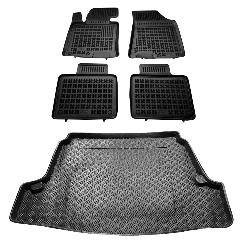 Πατάκια δαπέδου σετ με πατάκι πορτ μπαγκάζ τύπου σκαφάκια, Rezaw , κατασκευασμένα από υψηλής ποιότητας άοσμο ανθεκτικό καουτσούκ, φιλικό προς το περιβάλλον. Αντιολισθητικά και πολύ εύκολα στο καθάρισμα. Το χείλος που διαθέτουν (περίπου 3 - 4 cm τα πατάκια δαπέδου / περίπου 4 - 6cm το πατάκι πορτ μπαγκάζ) και η ειδικά διαμορφωμένη επιφάνεια συγκρατούν νερά, λάσπες, χώματα και χιόνι, διατηρώντας καθαρό το εσωτερικό του αυτοκινήτου. Διαθέτουν άψογη εφαρμογή.